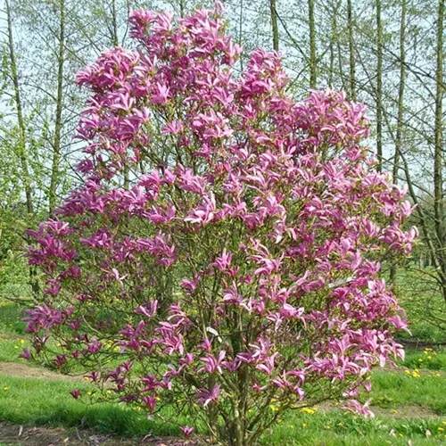 Магнолия Сьюзан может быть высажена как одиночный кустарник, а может стать частью дизайнерской группы, расположившись на переднем или среднем плане. Комбинировать ее принято с такими культурами, как туя, липа, калина и можжевельник. Крайне выигрышно смотрится сочетание магнолии и голубой ели. Хорошо смотреться дерево будет и с любыми цветами.