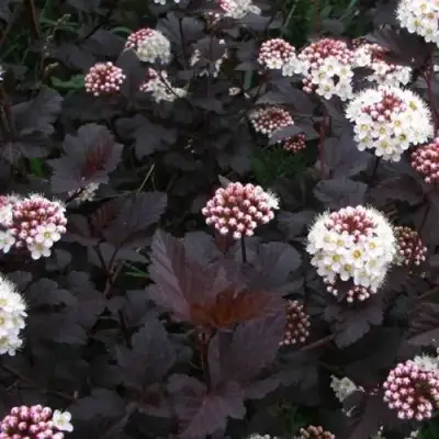 Саженцы пузыреплодника Диабло (Диаболо) — это изумительное растение, которое станет настоящим украшением любого сада или участка. Синоним популярности этого кустарника явно заключается в его эффектном внешнем виде, долговечности и неприхотливости в уходе. Он прекрасно подходит как для одиночных посадок, так и для создания живых изгородей и контрастных декоративных композиций.Пузыреплодник калинолистный Диабло — это высокорослый раскидистый куст с густой полушаровидной кроной. Он достигает высоты до 300 см и ширины до 300 см, демонстрируя при этом быстрый рост: ежегодный прирост кустарника составляет примерно 40 см. У него необычные темно-бордовые побеги, которые задают тоностный оттенок в дизайне ландшафта.