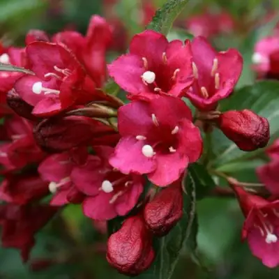 Цветение вейгелы «Ева Ратке» бывает обильным и продолжается с июня по август, с продолжительностью цветения около двух недель. Более того, это кустарник способен на повторное цветение, что добавляет ему дополнительную ценность для любой садовой композиции.