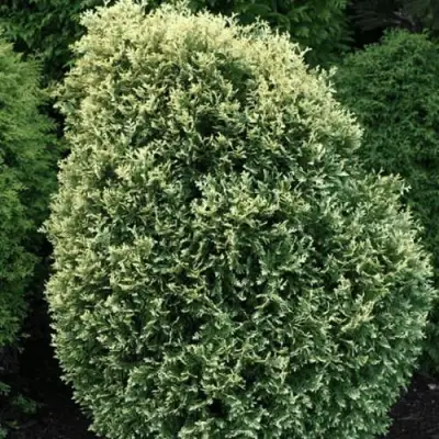Сорт с относительно невысокой скоростью роста и первоначально яйцевидной, позднее конической, довольно рыхлой привычкой роста. Он достигает 2,5 м в высоту и 1-1,3 м в возрасте до 10 лет. Стебли покрыты чешуей, двухцветной, зеленой и бело-кремовой, что придает растению характерный, пестрый вид.