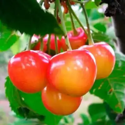 Приобретая саженцы черешни Дончанка, вы выбираете не просто фруктовое дерево, а настоящую находку для вашего сада. Этот сорт черешни был выведен талантливым ученым Л.И. Тараненко на Донецкой опытной станции в 1988 году благодаря скрещиванию семян известного сорта Дрогана желтая, произрастающего среди мелитопольских сортов. Черешня Дончанка славится своей универсальностью и высокой урожайностью, что делает её идеальным выбором как для любителей ягод, так и для тех, кто хочет получить стабильный доход от сада.Данный сорт отличается сильнорослым типом роста. В условиях хорошего ухода, к плодоносному периоду дерево может вырасти до 3,5 метров. Крона округлой формы придаёт саженцу аккуратный и ухоженный вид. Листья черешни крупные, зелёные, с яйцевидной формой и легким морщинистым рельефом, слегка заострённые на концах, что делает растение ещё более привлекательным. Цветки белые, а плоды – настоящая жемчужина вашего сада.