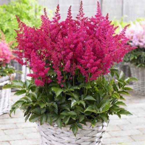 Цветение: Астильба Лаки Дэй радует глаз обилием темно-розовых компактных соцветий, которые делают её незаменимой для создания ярких цветочных композиций.
