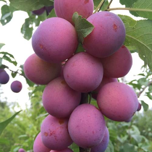 Плоды сливы Империал располагаются густо по всей кроне, создавая впечатляющий вид во время плодоношения. Их основной цвет – розовый, но иногда можно встретить плоды с фиолетовым или коричневым оттенком. Не стоит опасаться, что разные окраски плодов влияют на их вкус: все они обладают нежной мякотью золотистого цвета и медовым привкусом, с легкой кислинкой, создающей гармонию вкусовых ощущений. Средний вес одного плода составляет около 55 граммов, что делает их идеальными для приготовления компотов, джемов и других домашних деликатесов.